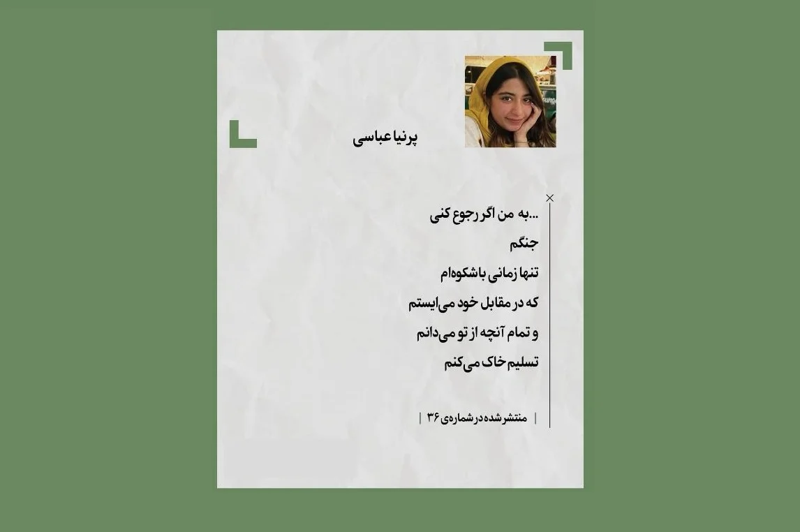 پرنیا عباسی، شاعر جوان ایرانی، در حالی که صدای تازه‌اش در شعر معاصر شنیده می‌شد، در ۲۴ سالگی قربانی جنگ شد و به ستاره‌ای خاموش در آسمان ادبیات ایران بدل گشت.