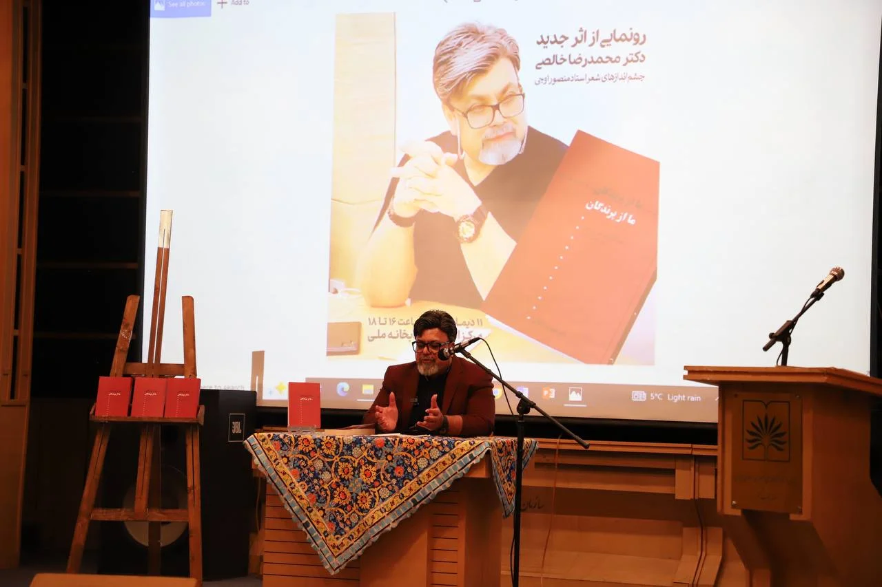 همچنین محمدرضا خالصی، نویسنده و منتقد ادبی و مؤلف کتاب «ما از پریدگان، ما از پرندگان» که در این مراسم رونمایی شد، با نگاهی فلسفی به جهان شعری اوجی گفت: در روزگاری که انسان معاصر در وضعیتی برزخی بهسر میبرد، شعر منصور اوجی راهی برای رهایی و زیستن میگشاید. وی این کتاب را ادای دِینی به شاعری دانست که اندیشهاش بر دو پایه عشق و زیبایی استوار بود.